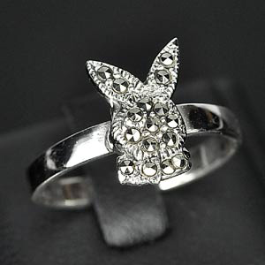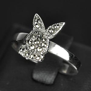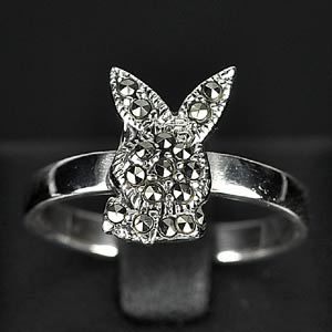 3.32 G. Rabbit Black Marcasite 925 Silver Jewelry Ring Size 8