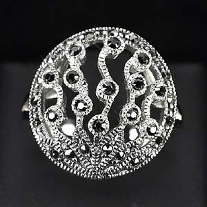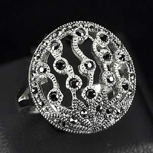 5.46 G. 925 Silver Jewelry Ring Size 8 Natural Diamond Cut Black Marcasite