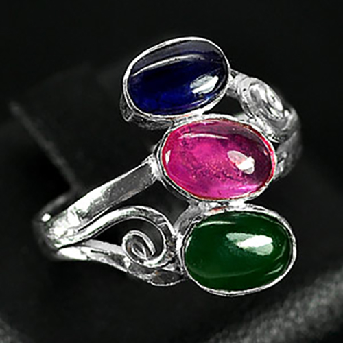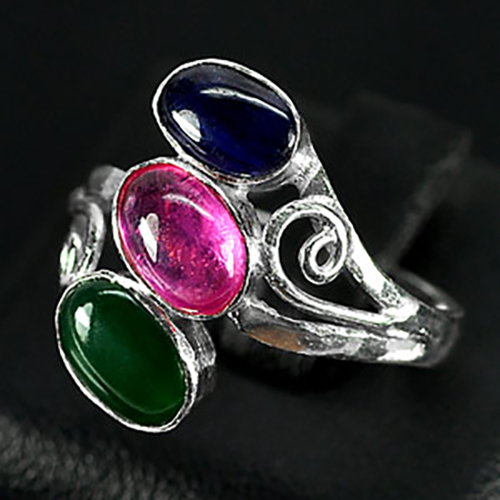 2.76 G. Natural Jade Ruby Sapphire Sterling Silver Ring Size 6.5