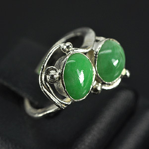 3.35 G. Alluring Natural Green Jade Sterling Silver Ring Size 6.5