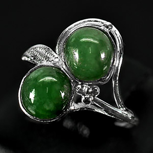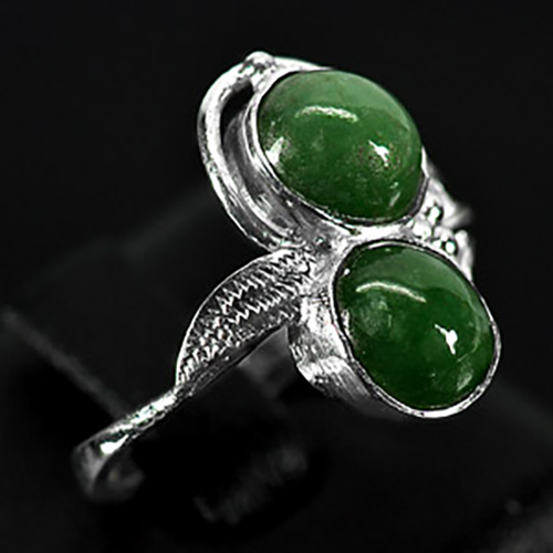 3.27 G. Pretty Natural Green Jade Sterling Silver Ring Size 6.5