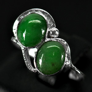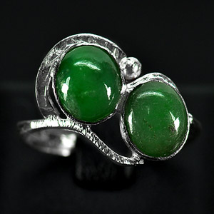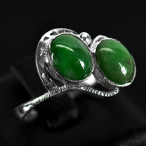 3.19 G. Seductive Natural Green Jade Sterling Silver Ring Size 8