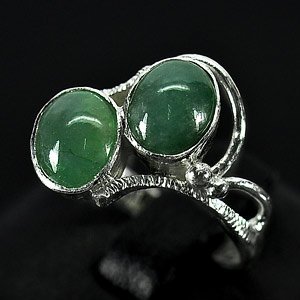 2.99 G. Vivid Natural Green Jade Sterling Silver Ring Size 6