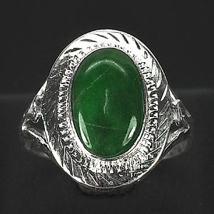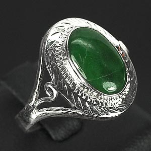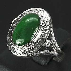 3.11 G. Natural Green Jade Sterling Silver Ring Size 8.5