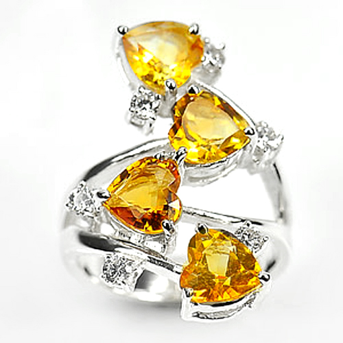 Center: Yellow Citrine Heart Size 7.1 x 7 x 4.1 Mm. 4 Pcs.