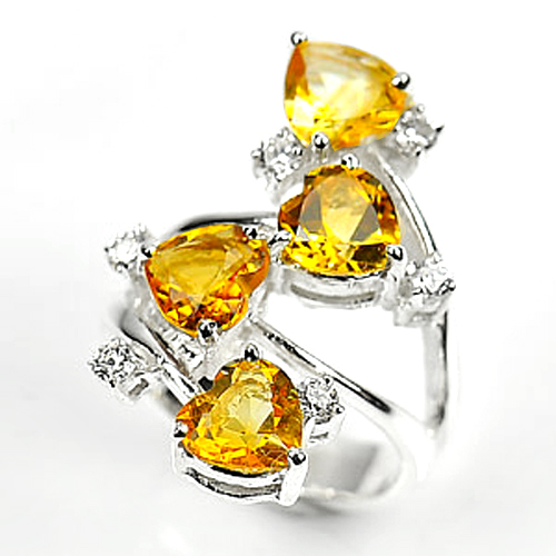 8.75 G. Natural Gem Yellow Citrine Real 925 Sterling Silver Jewelry Ring Size 6