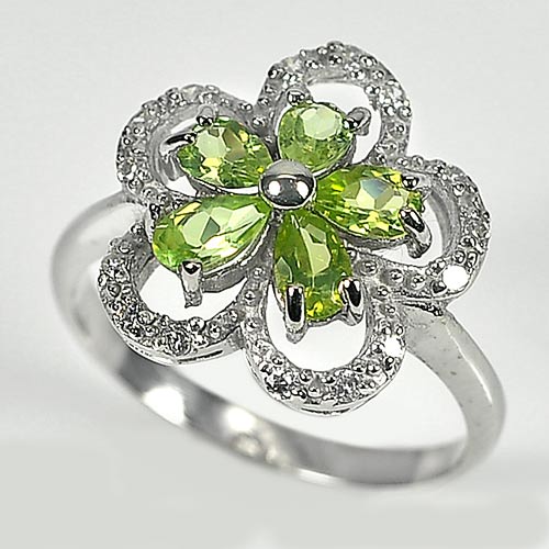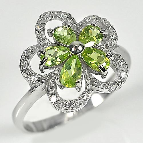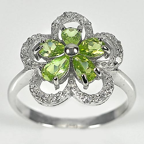 2.88 G. Pear Shape Natural Green Peridot Real 925 Silver Jewelry Ring Size 7