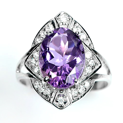 Purple Amethyst Real 925 Sterling Silver 5.05 G. Ring Size 9.5 Natural Gemstone