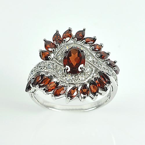 3.92 G. Natural Orangish Red Garnet Gems Real 925 Sterling Silver Ring Size 7.5