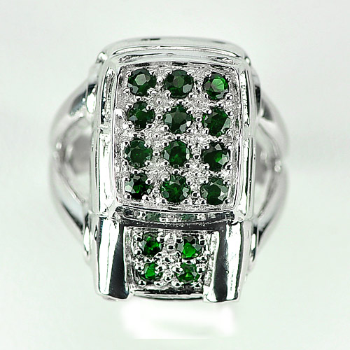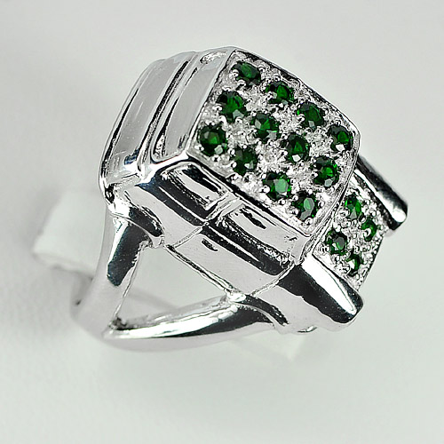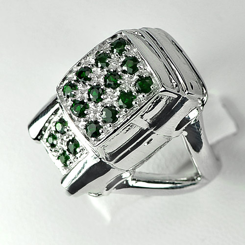 13.92 G. Natural Green Chrome Tourmaline Real 925 Sterling Silver Rings Size 7.5