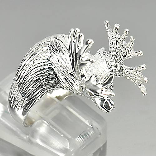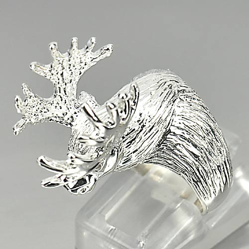 9.91 G. Real 925 Sterling Silver Jewelry Ring Size 6 Reindeer Design