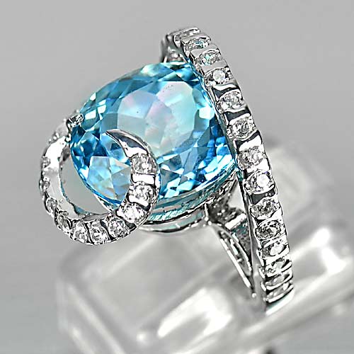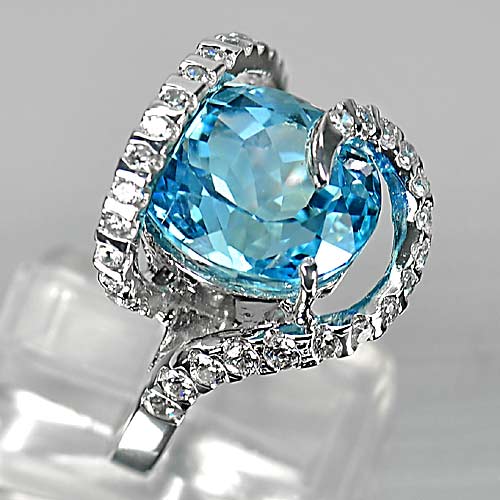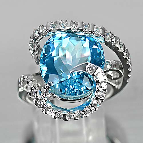 10.89 G. Lovely Natural Swiss Blue Topaz 925 Sterling Silver Ring Sz 6.5