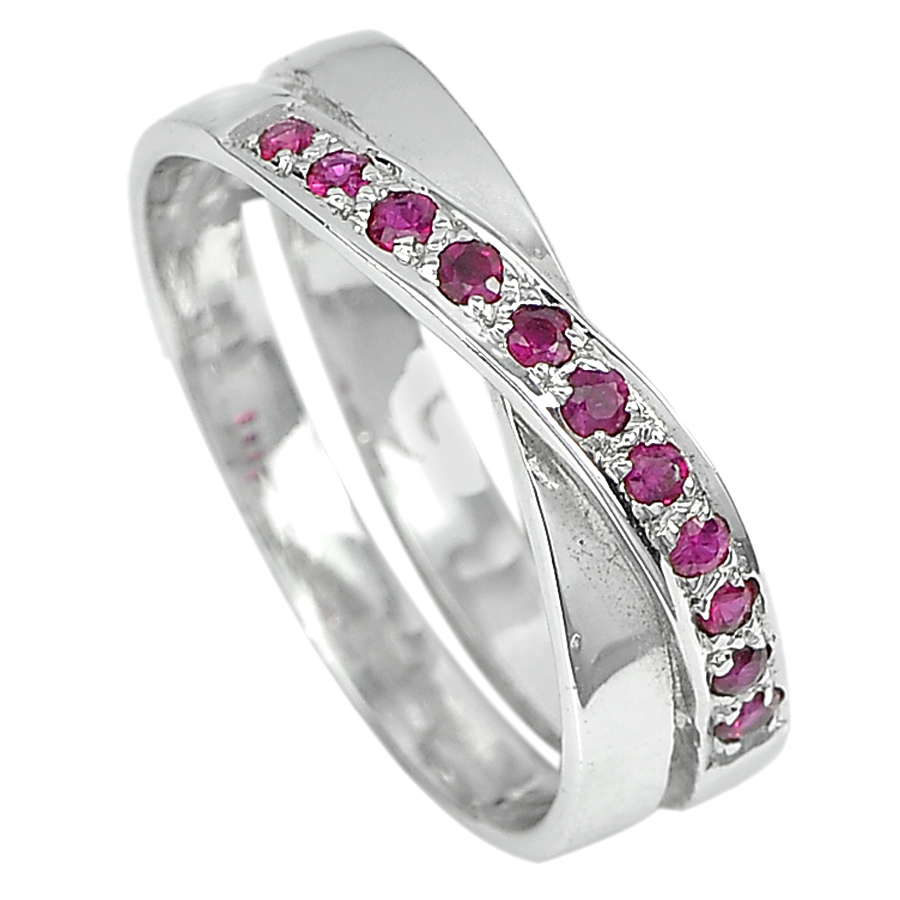 3.19 G. Natural Gems Red Pink Ruby Real 925 Sterling Silver Jewelry Ring Size 7
