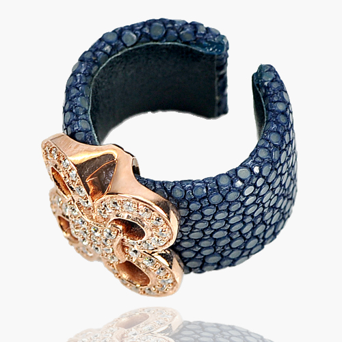 7.33 G. Blue Stingray Leather Sterling Rose Gold Silver 925 Ring Adjustable