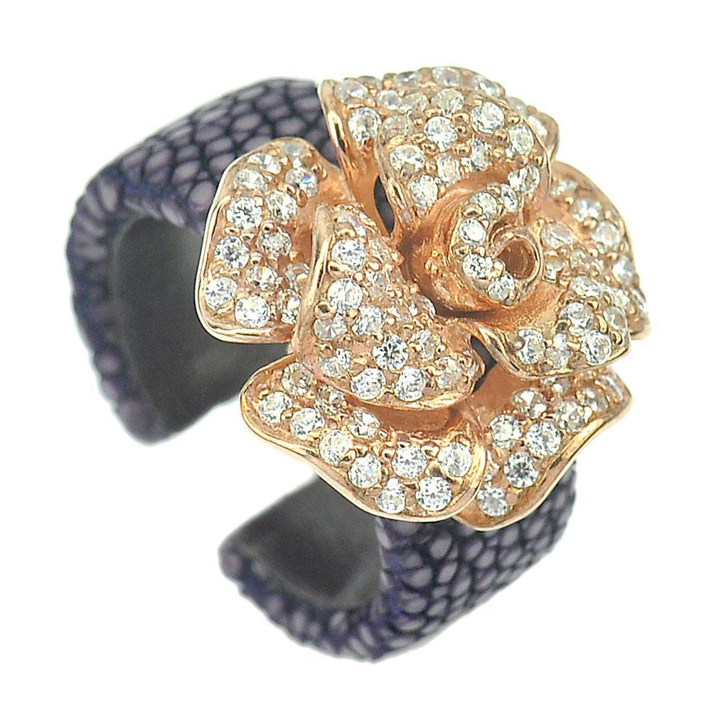 7.22 G. Violet Stingray Leather 925 Sterling Silver Rose Gold Ring Free Size