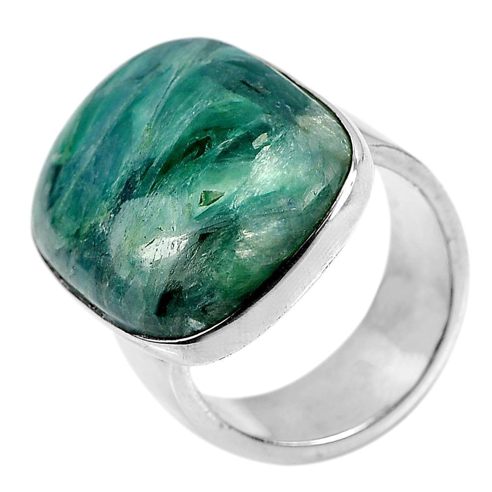 13.24 G. Natural Green Kambaba Jasper Real 925 Sterling Silver Ring Size 6.5
