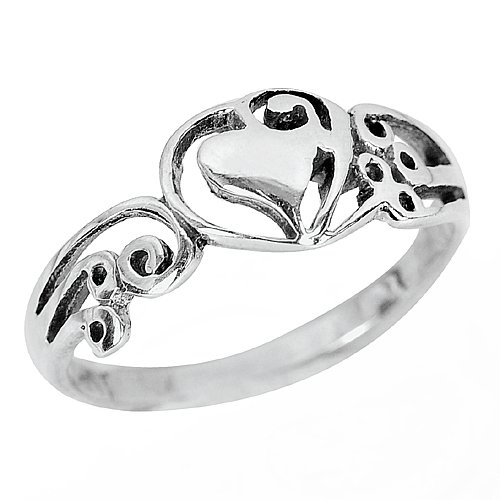 2.25 G. Heart Design Jewelry Real 925 Sterling Silver Ring Size 9
