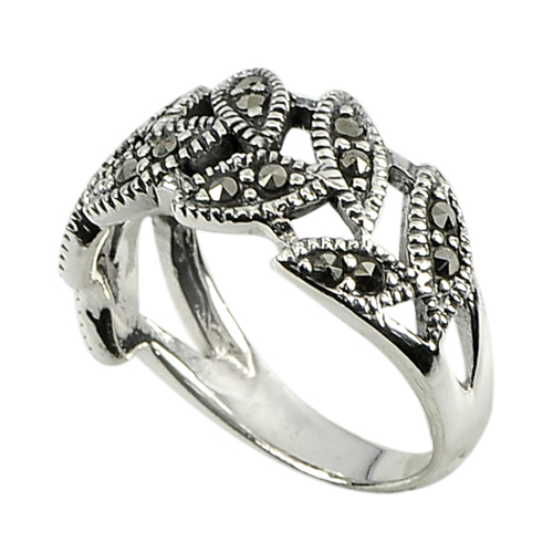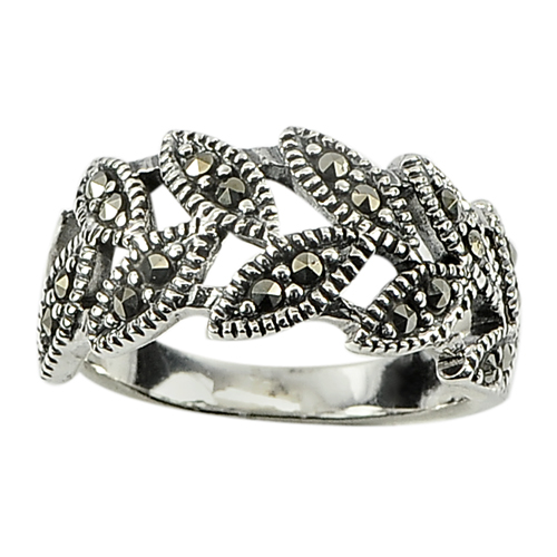3.81 G. Leaves Marcasite Real 925 Sterling Silver Jewelry Ring Size 5.5