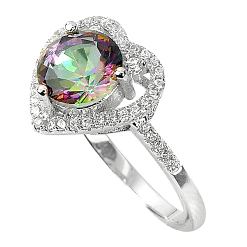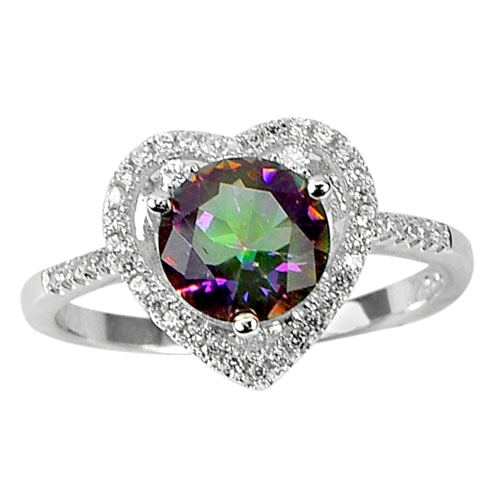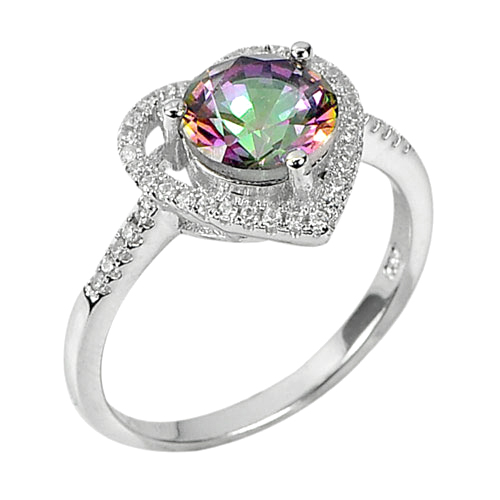 925 Sterling Silver Ring Jewelry with Natural Mystic Quartz and CZ Size 8.5