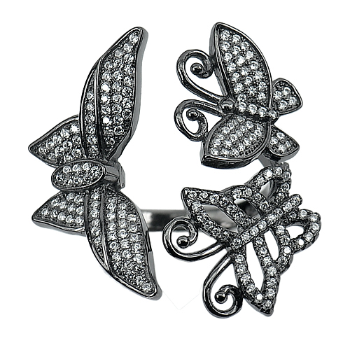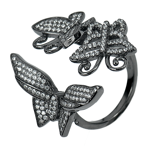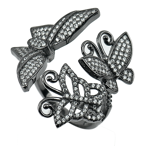 8.32 G. Nice Butterfly Design whit CZ Real 925 Sterling Silver Oxidize Size 8