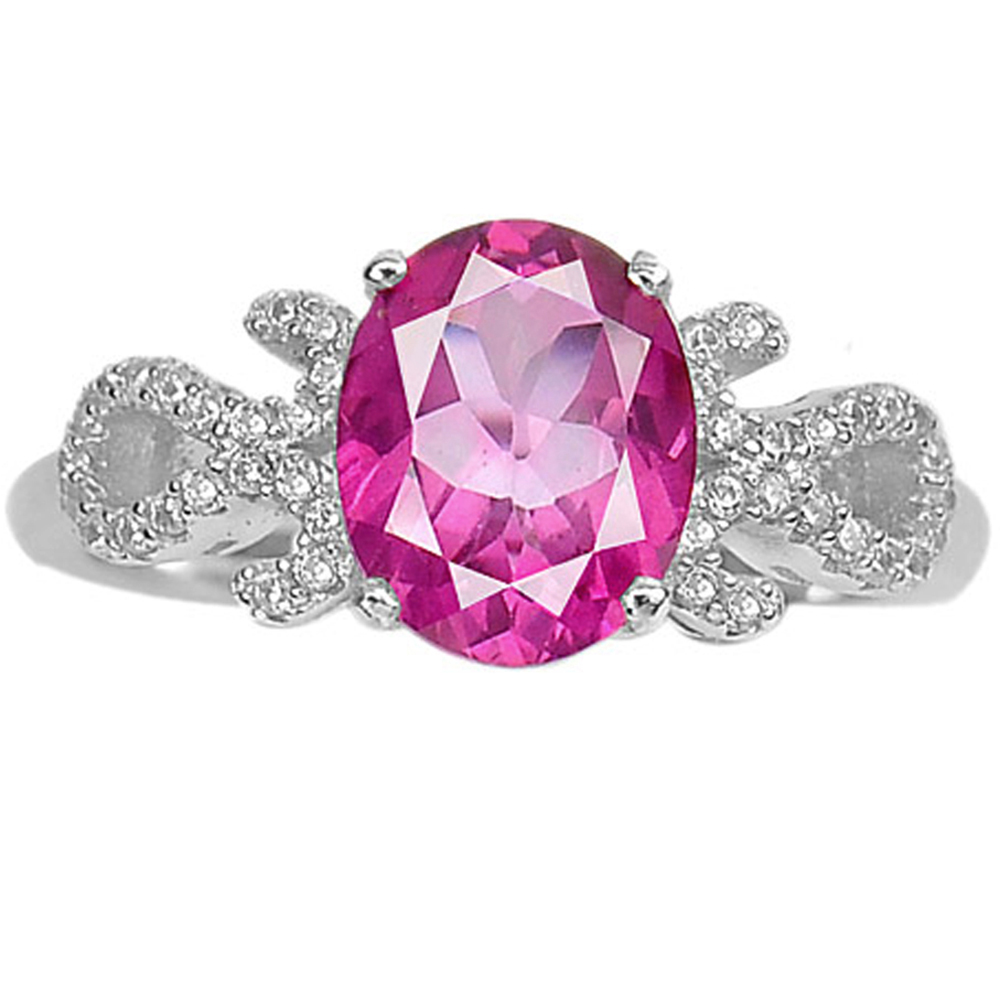Natural Pink Topaz Oval Size 10 x 6 Mm. 1 Pc. And White CZ Round Size 1 x 1 Mm. Stam 925