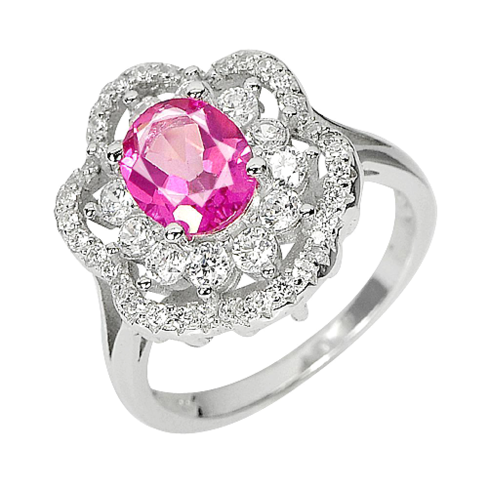 5.49 G. Beautiful Gem Natural Pink Topaz Real 925 Sterling Silver Ring Size 9.5