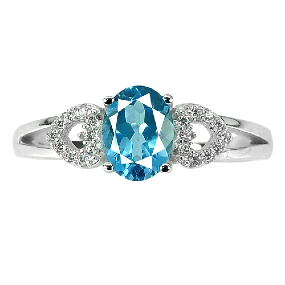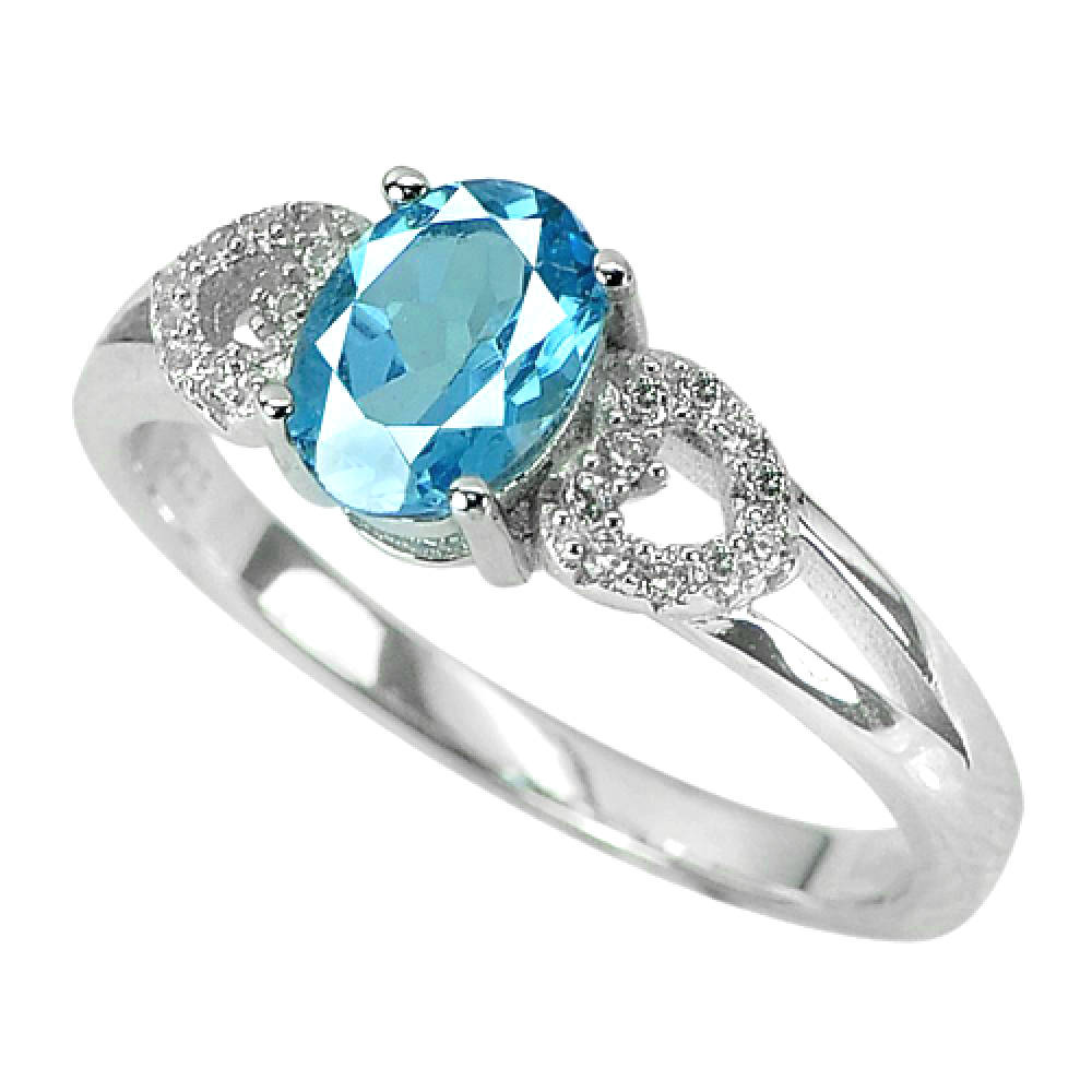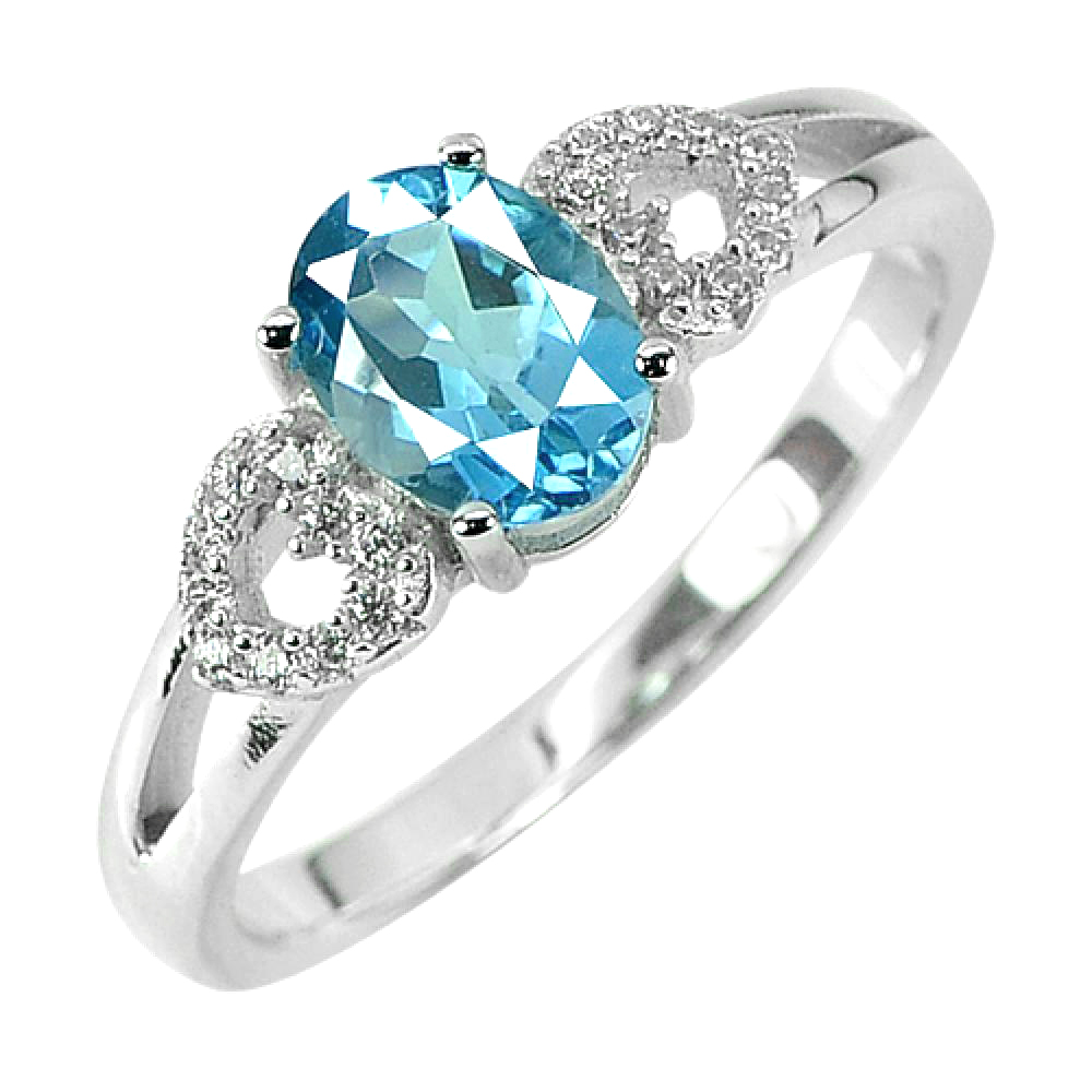 Natural Swiss Blue Topaz Oval Size 8 x 6 Mm. 1 Pc. and White CZ Round Size 1 x 1 Mm. Stam 925