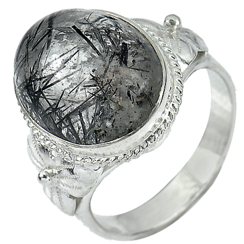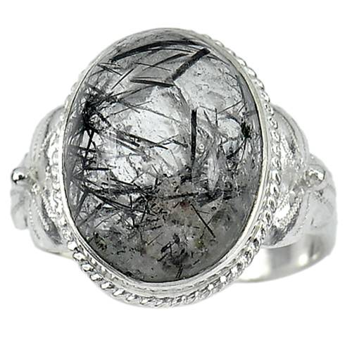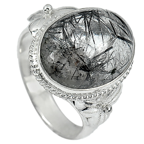 Rutilated Quartz 925 Silver Jewelry 5.67 G. Oval Cabochon Ring Size 8 Natural