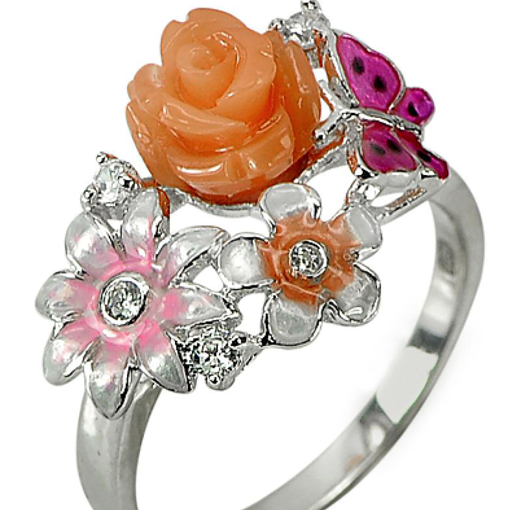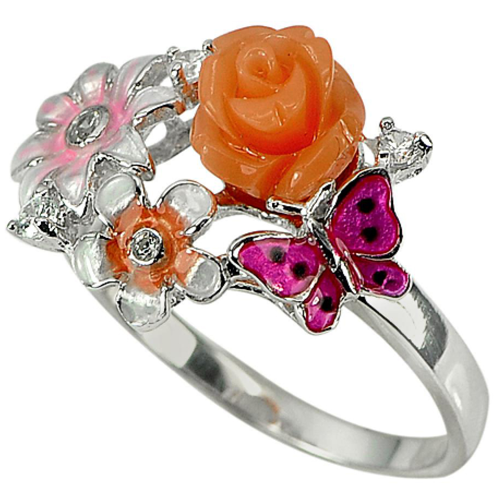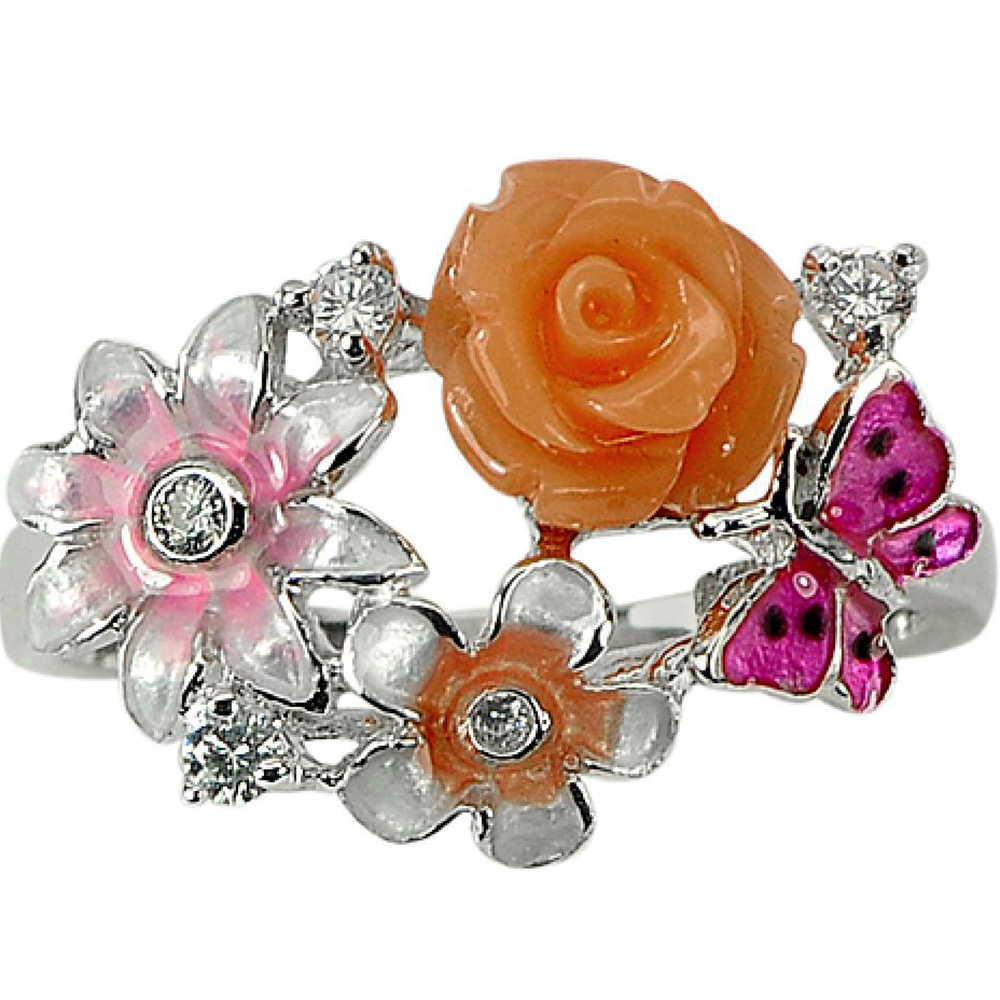 925 Sterling Silver Ring Jewelry with Flower Resin Butterfly Enamel and CZ Sz 7