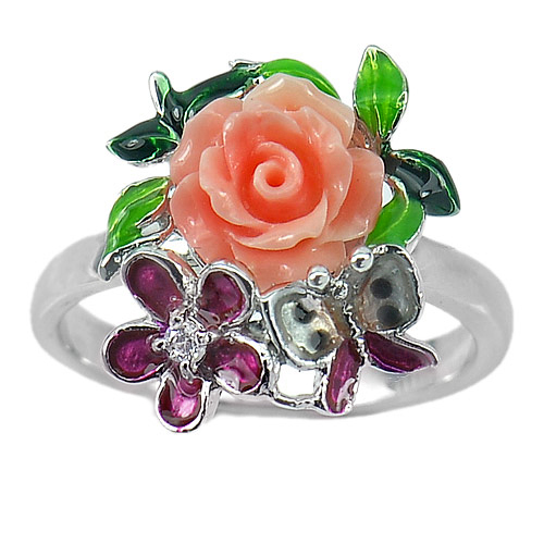 3.94 G. Rose Orange Rasin Design Real 925 Sterling Silver Ring Size 7