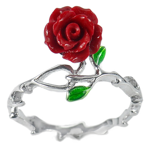 2.22 G. Lovely Rose Red Resin Desing Real 925 Sterling Silver Ring Size 7