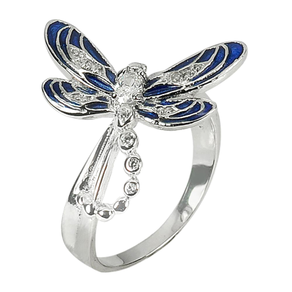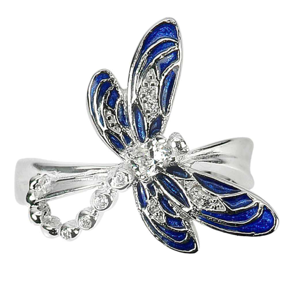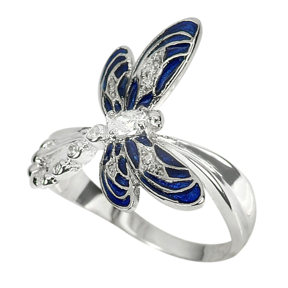 925 Sterling Silver Jewelry Blue Dragonfly Design 5.63 G. Ring Size 7 Beautiful