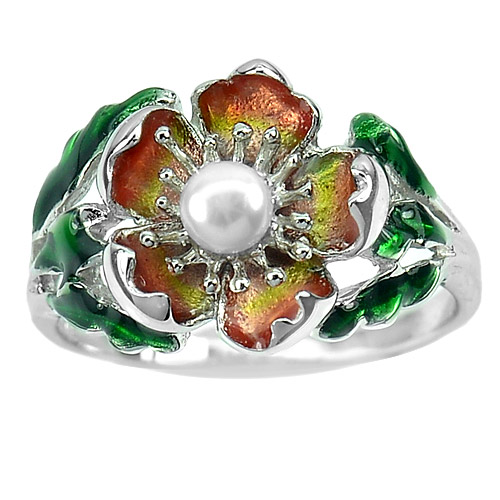 5.18 G. Natural White Pearl Desing Real 925 Sterling Jewelry Silver Ring Sz 6