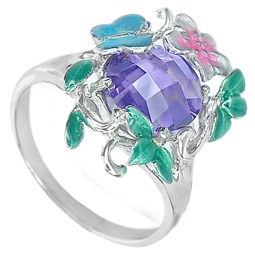 6.04 G. Good Natural Gem Purple Amethyst Real 925 Sterling Silver Ring Size 6