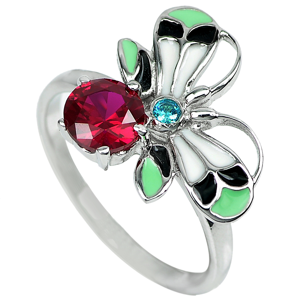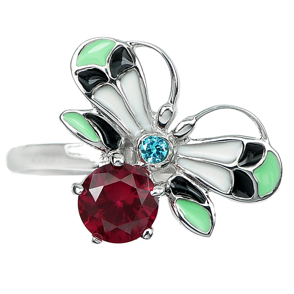 3.04 G. Lovely Multi Color Butterfly Enamel Real 925 Sterling Silver Ring Size 7