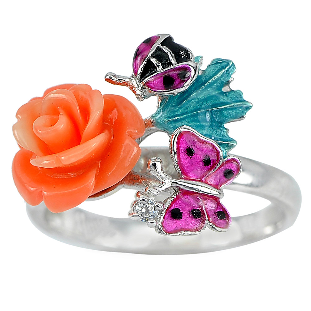 4.48 G. Design Flower Resin with Enamel Real 925 Sterling Silver Ring Size 9