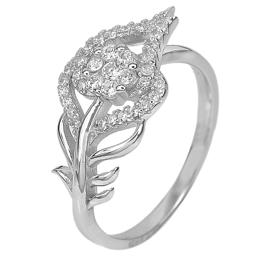 2.55 G. Real 925 Sterling Silver Jewelry Ring Size 7 with Cz White Round