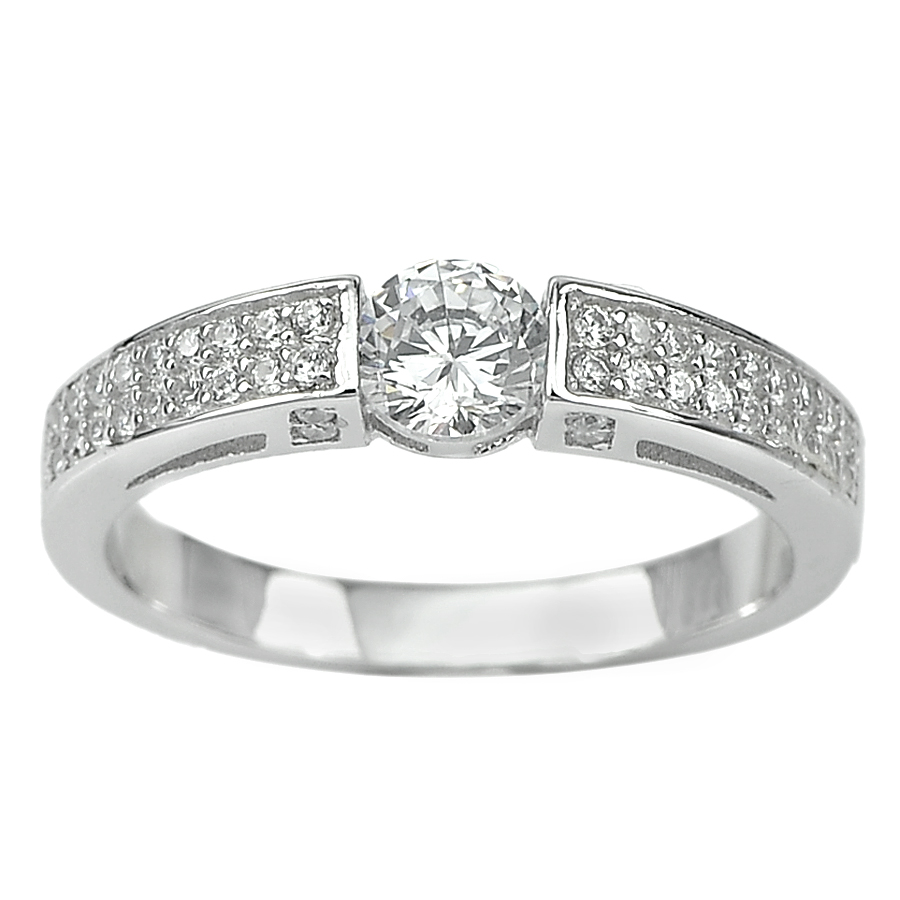 3.05 G. Nice Round CZ White Real 925 Sterling Silver Jewelry Ring Size 7