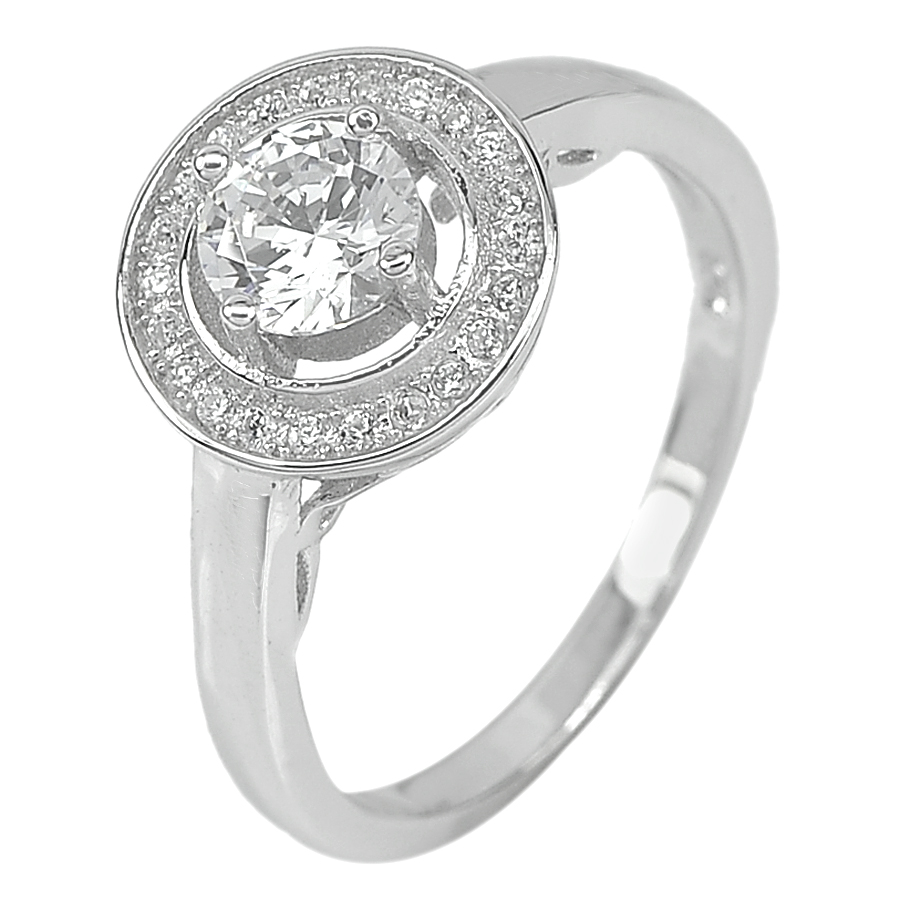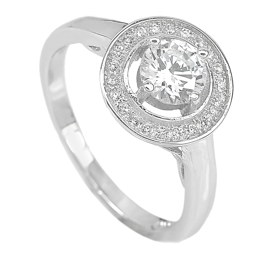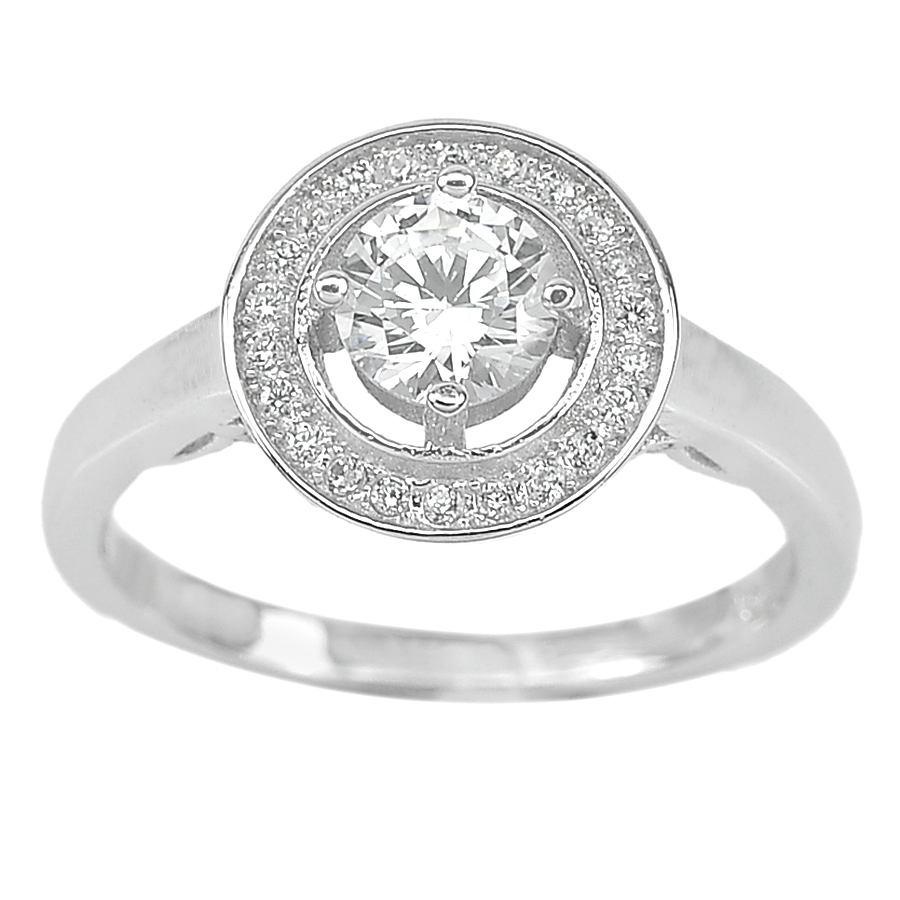 3.13 G. CZ White Round Real 925 Sterling Silver Fine Jewelry Ring Size 7