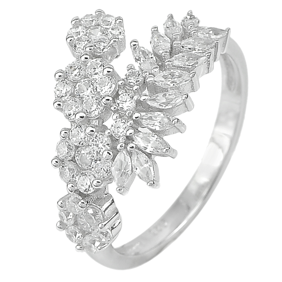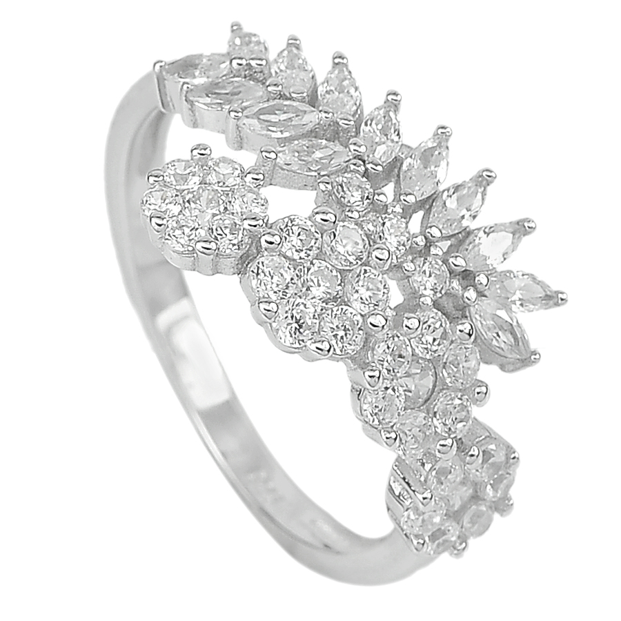 2.84 G. Real 925 Sterling Silver Jewelry Ring Size 7.5 with CZ White Round