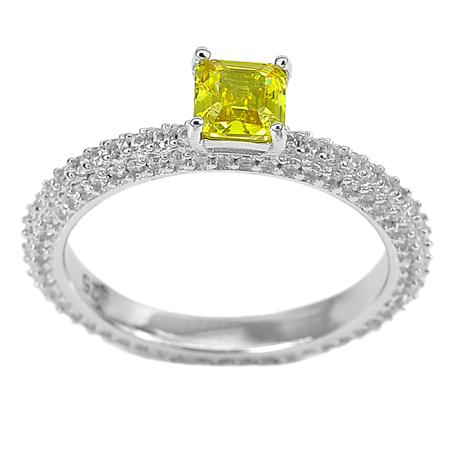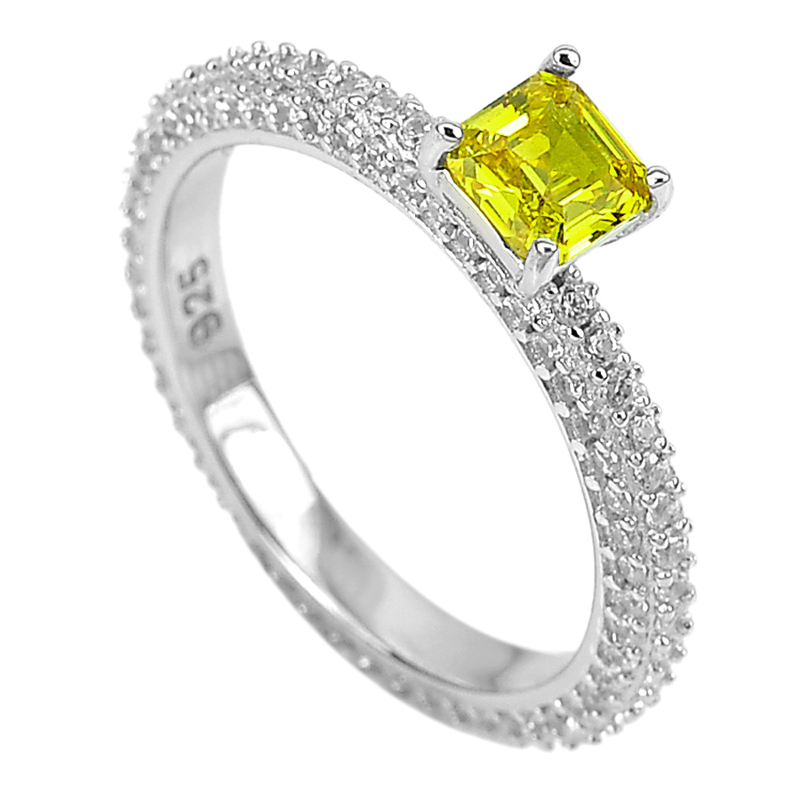 Yellow CZ Real 925 Sterling Silver Jewelry 3.03 G. Good Square Ring Size 7.5
