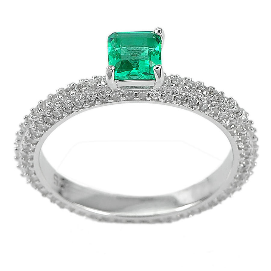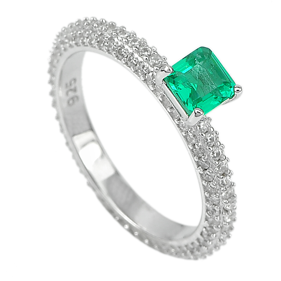 2.97 G. Real 925 Sterling Silver Jewelry Ring Size 8 Good Square Green CZ