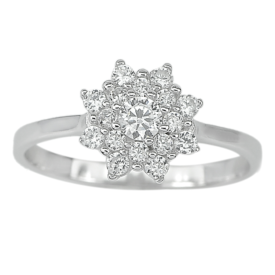 2.25 G. Round White Cz Real 925 Sterling Silver Flower Staly Ring Size 7
