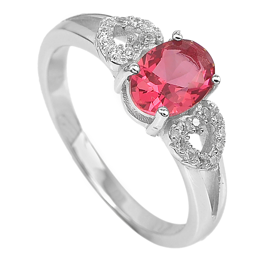 3.08 G. Lovely Oval Shape Pink CZ Real 925 Sterling Silver Jewelry Ring Size 8