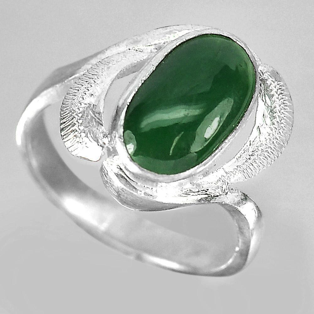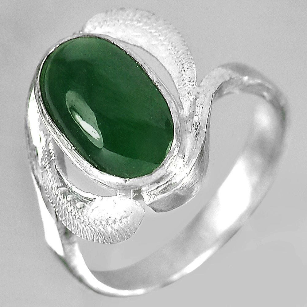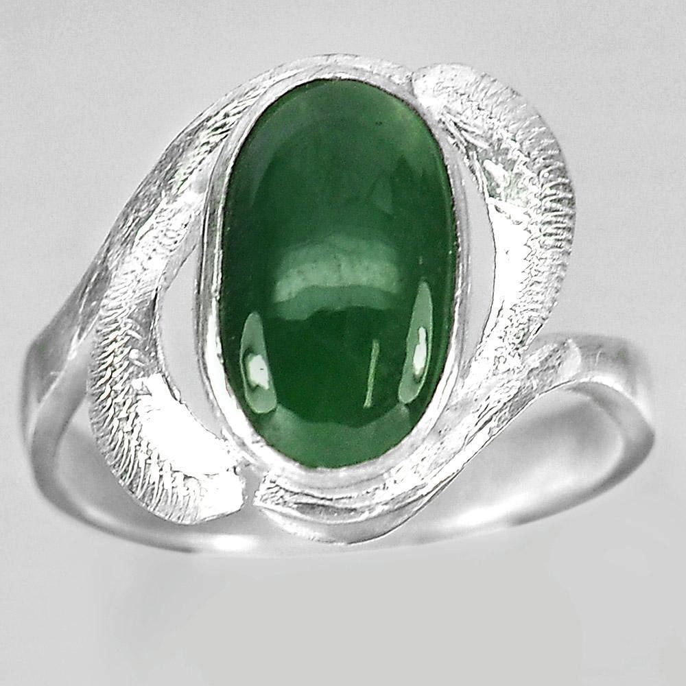 2.88 G. Natural Gem Oval Cabochon Green Jade 925 Sterling Silver Ring Size 5.5