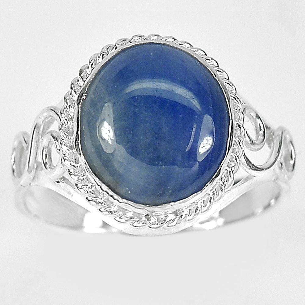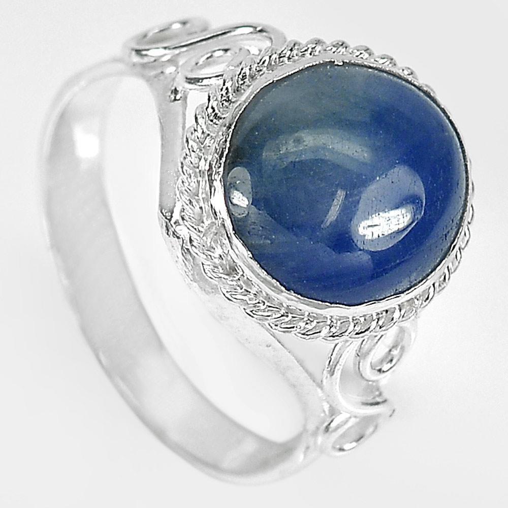 3.08 G. Oval Cabochon Natural Blue Sapphire 925 Sterling Silver Ring Size 6