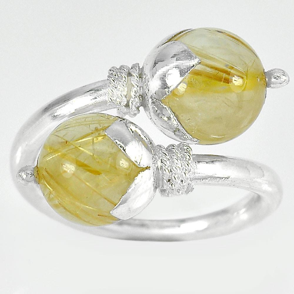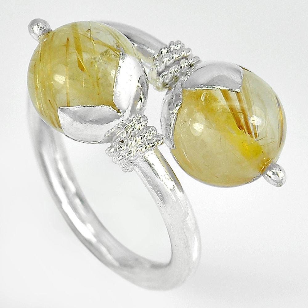 5.66 G. Natural Gem Brown Rutilated Quartz 925 Sterling Silver Ring Size 6.5