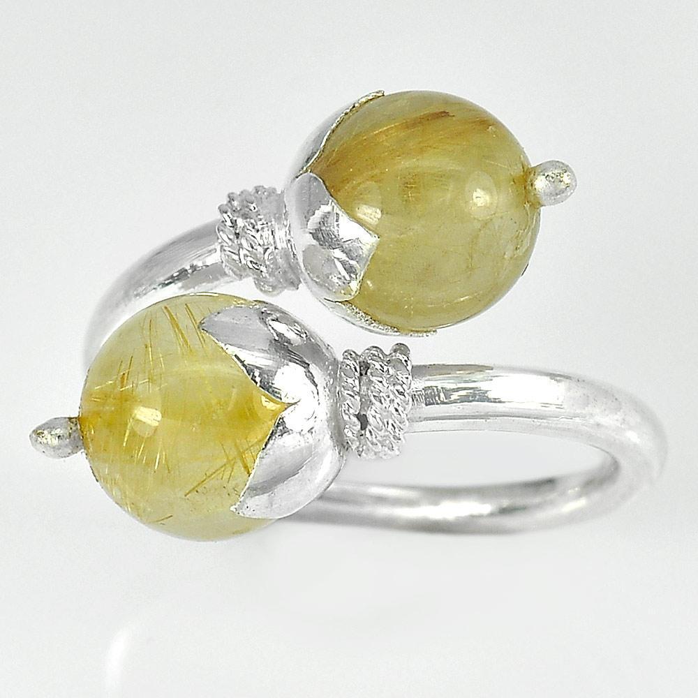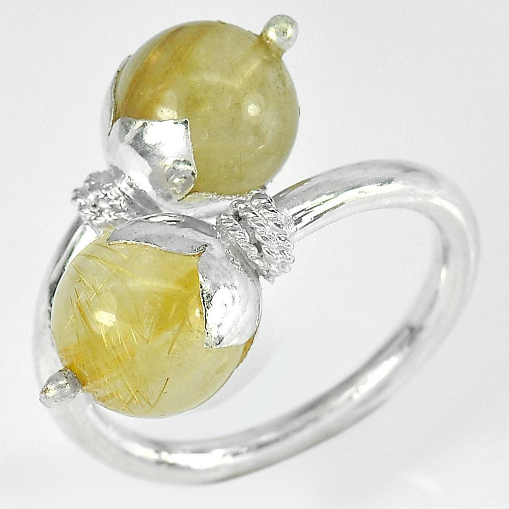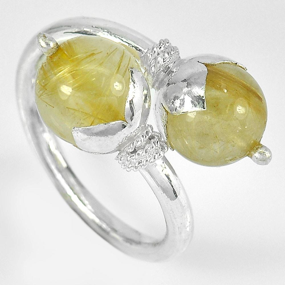 5.64 G. Natural Gemstone Brown Rutilated Quartz 925 Sterling Silver Ring Size 6