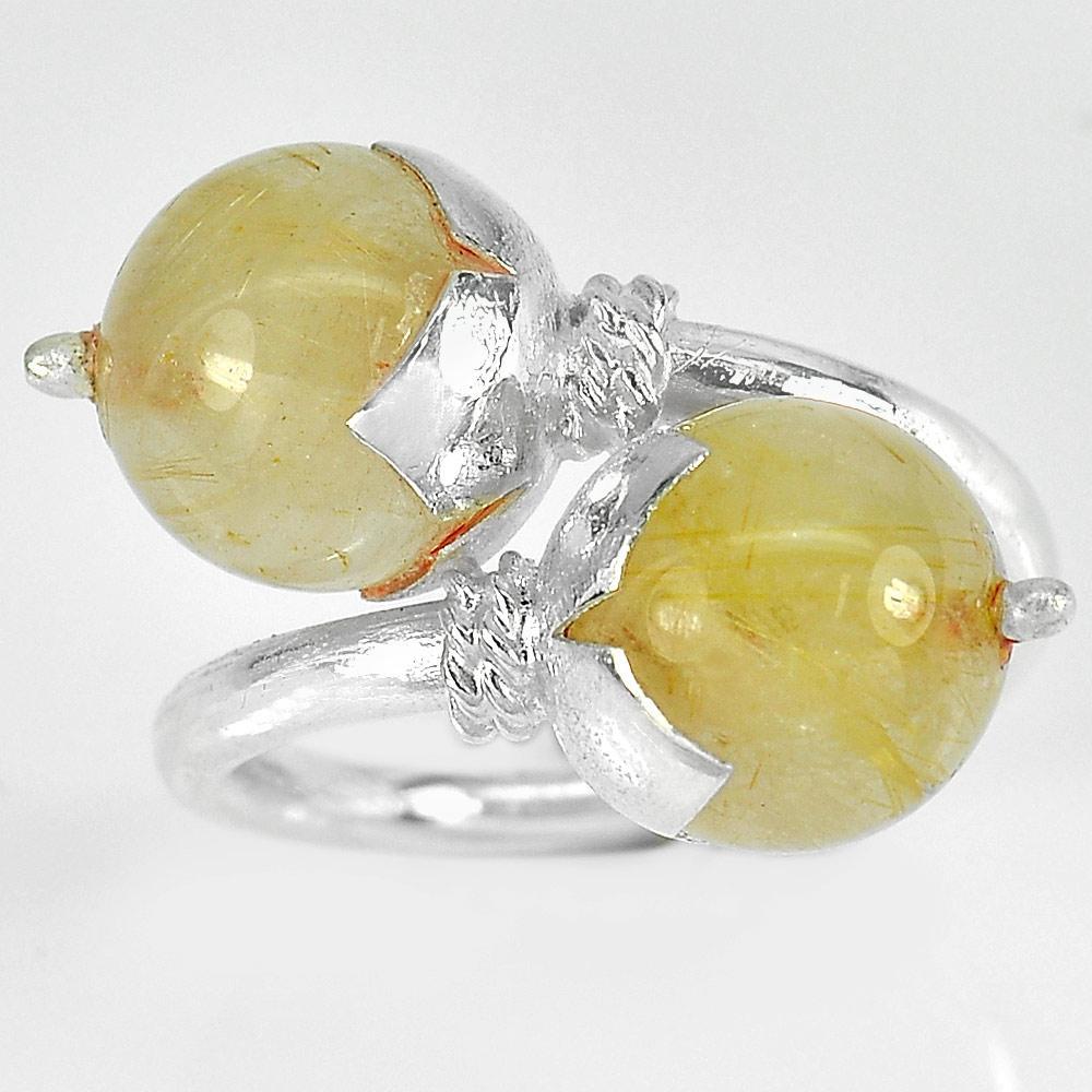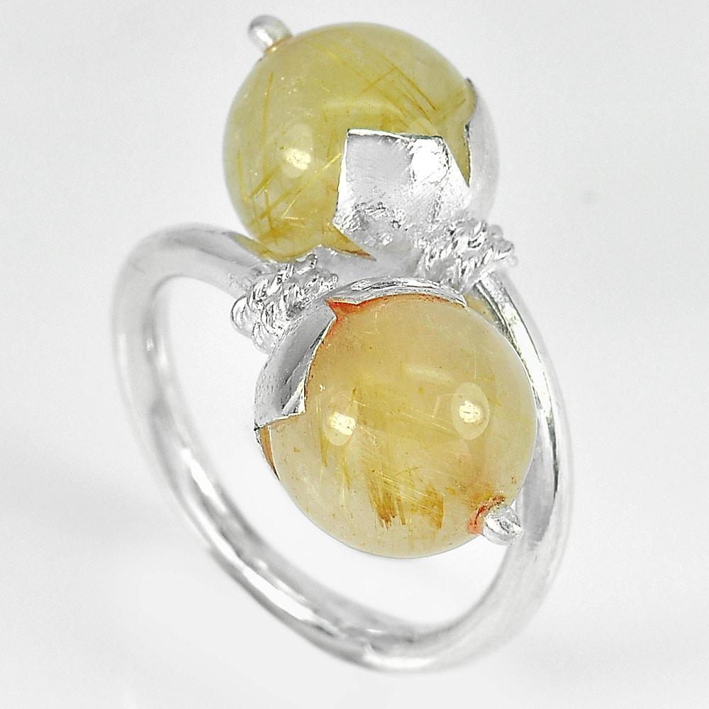 8.37 G. Natural Gem Brown Rutilated Quartz 925 Sterling Silver Ring Size 6.5