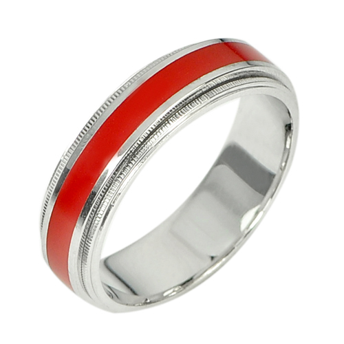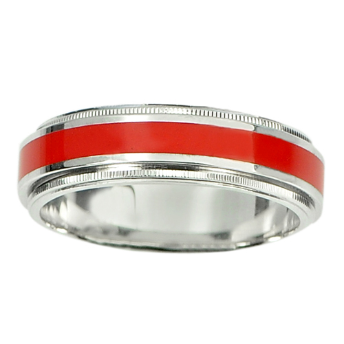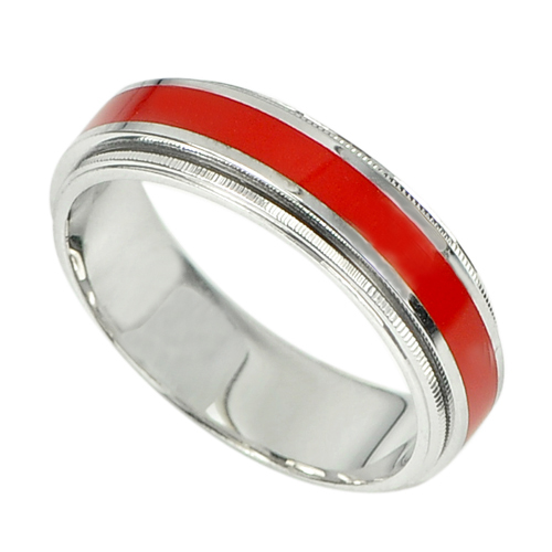4.04 G. Red Enamel Real 925 Sterling Silver Fine Jewelry Ring Size 8.5 Beautiful